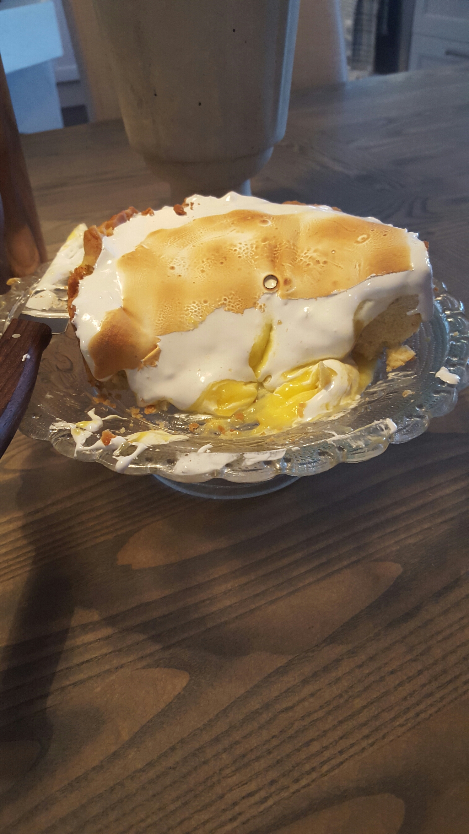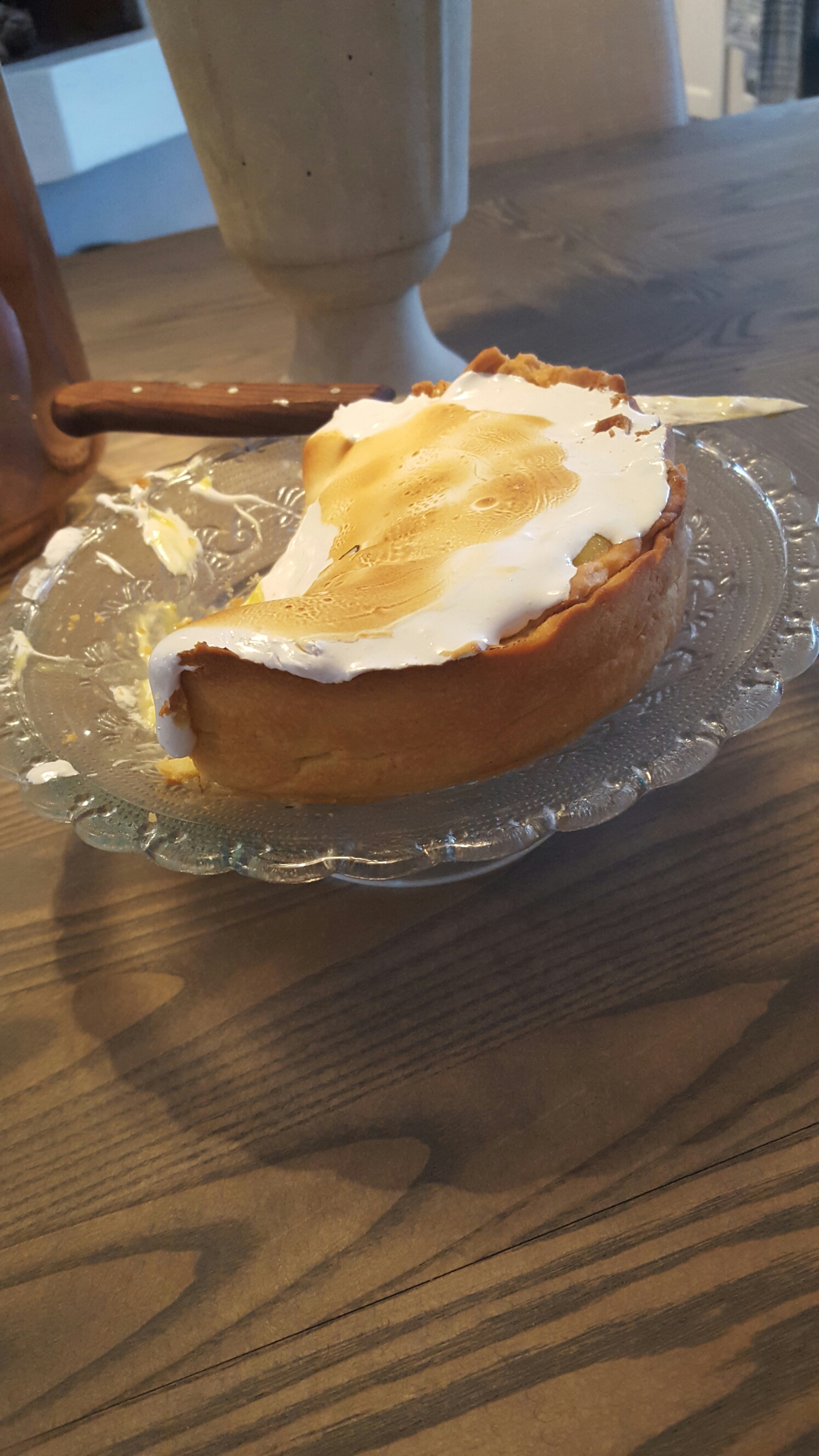 Ikke alltid det går så bra…. orka ikke kjøle ned tertebunnen før den skulle stekes.. så den krympa og ble bare rar. Sitronkremen hadde vært fryst så den ble ganske rennende. Sukkerlaken til (italiensk) marengs kokte til godt over 130 grader og marengsen ble ikke stiv nok selv om den ble pisket lenge.